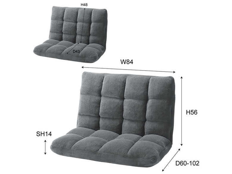 | サイズ/寸法 | W84×H56×D60-102×SH14cm 背もたれ W48 |