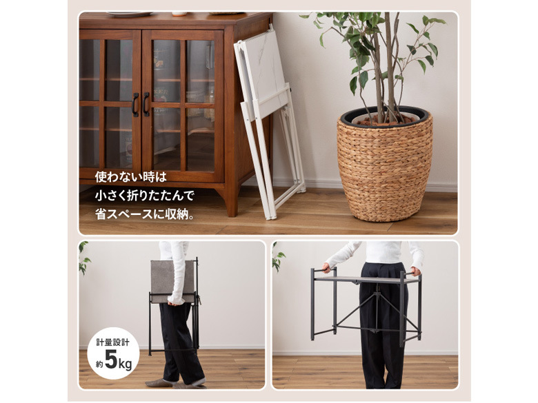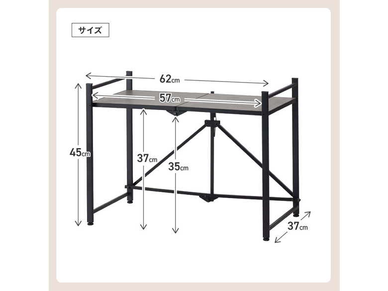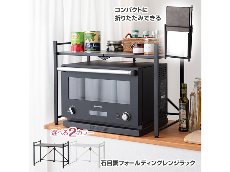 使わない時は折りたたんで省スペースに収納可能なレンジラック
