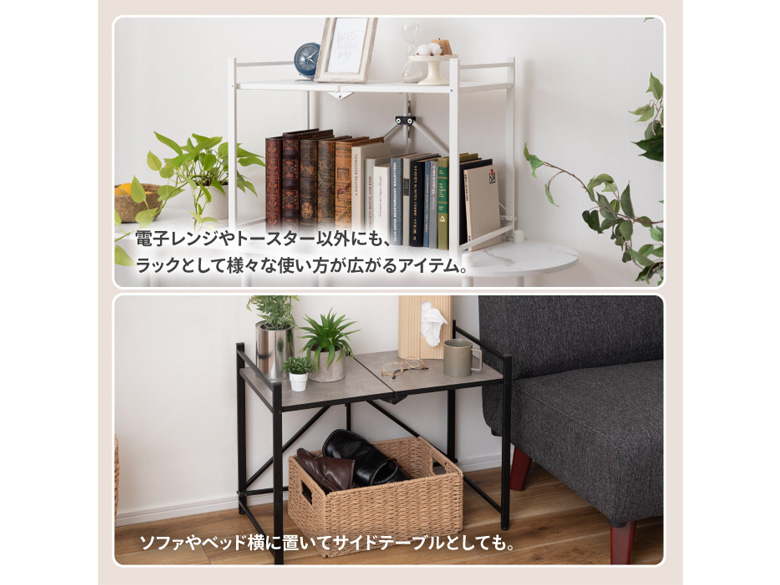 ●電子レンジやトースター以外にも、ラックとして様々な使い方が広がるアイテム。