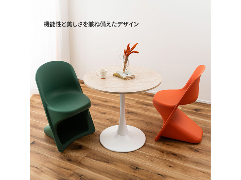 ●滑らかな曲線が生み出す独特のフォルムが目を引くスタッキングチェア。