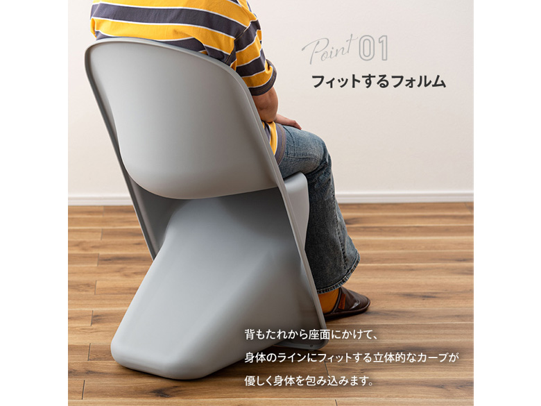 ●背もたれから座面にかけて、身体のラインにフィットする立体的なカーブが、優しく身体を包み込みます。