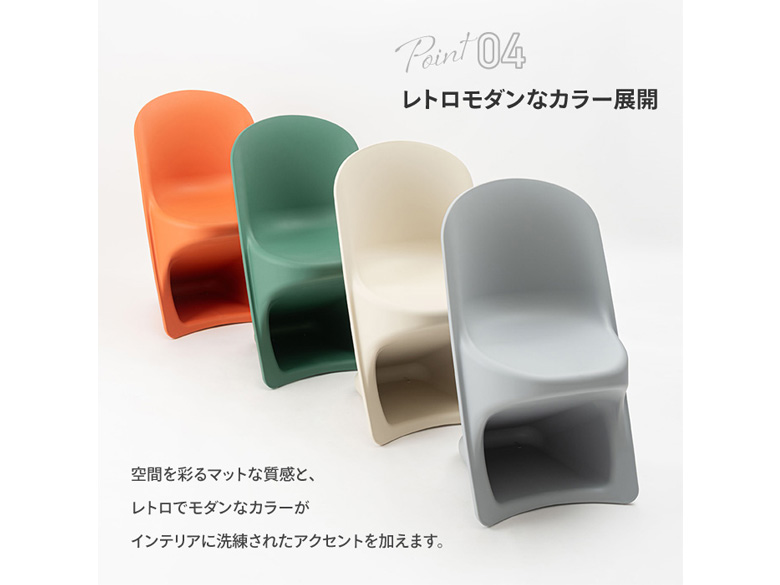 ●空間を彩るマットな質感と、レトロでモダンなカラーがインテリアに洗練されたアクセントを加えます。