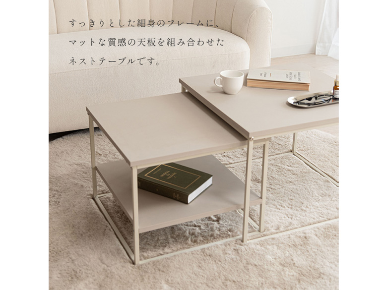 すっきりとした細身のフレームに、マットな質感の天板を組み合わせたネストテーブルです。