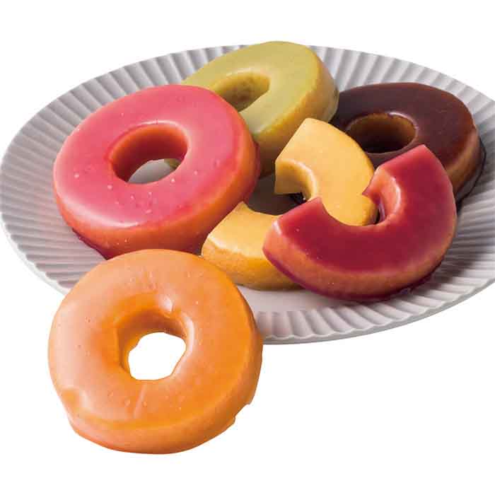 和菓子職人が考案した、餡でコーティングしたバウムクーヘンです。 ミニサイズのバウムにさまざまなフルーツを使用した餡をたっぷりとかけました。見た目もカラフルな和洋スイーツです。
