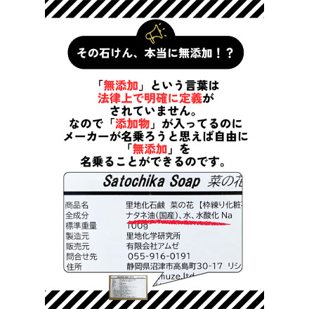 香料、着色料、保存料など一切不使用の石鹸です。