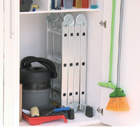 普通のはしごと違ってステップエイトはコンパクト(約 縦95× 横61 × 幅26cm)に折りたためます。
