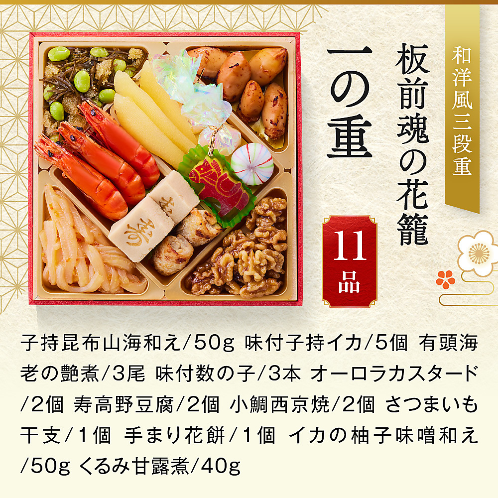 冷凍おせち 2~3人前 和洋風三段重 板前魂の花籠 【販売終了日:2025年12月21日】