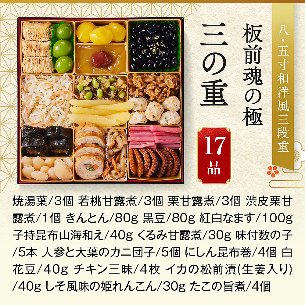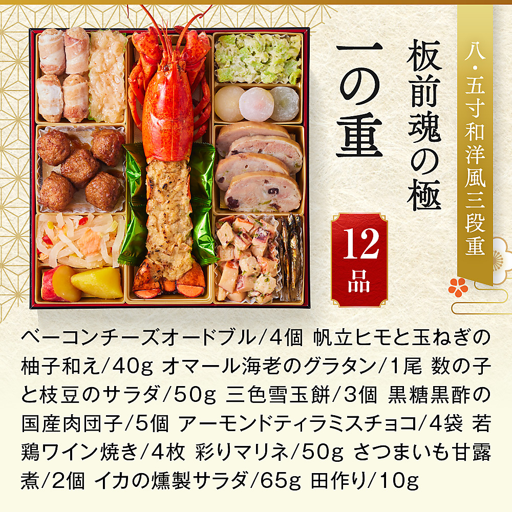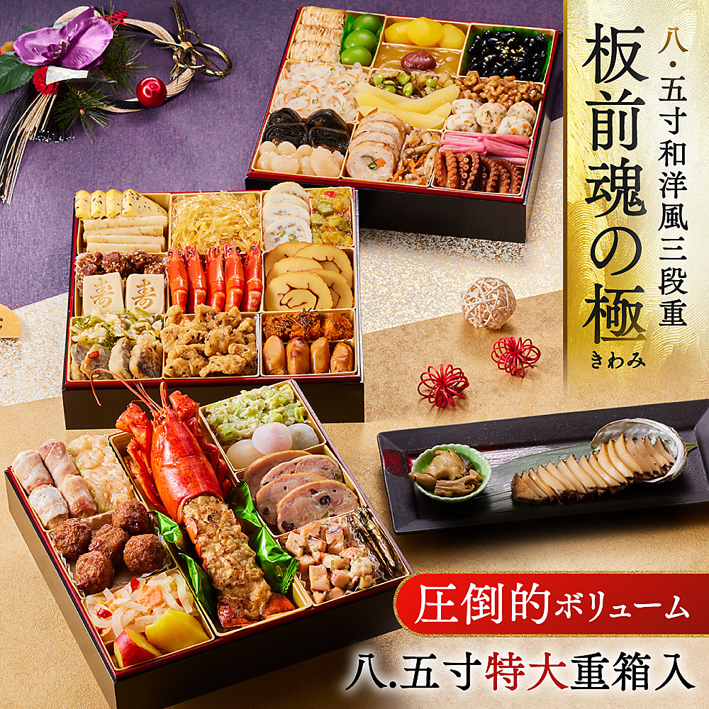 冷凍おせち 4~5人前 八.五寸和洋風三段重 板前魂の極 【販売終了日:2025年12月21日】