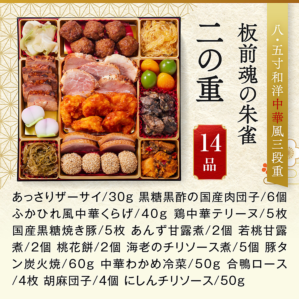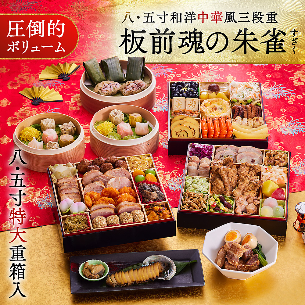 冷凍おせち 4~5人前 八.五寸和洋中華風三段重 板前魂の朱雀 【販売終了日:2025年12月21日】