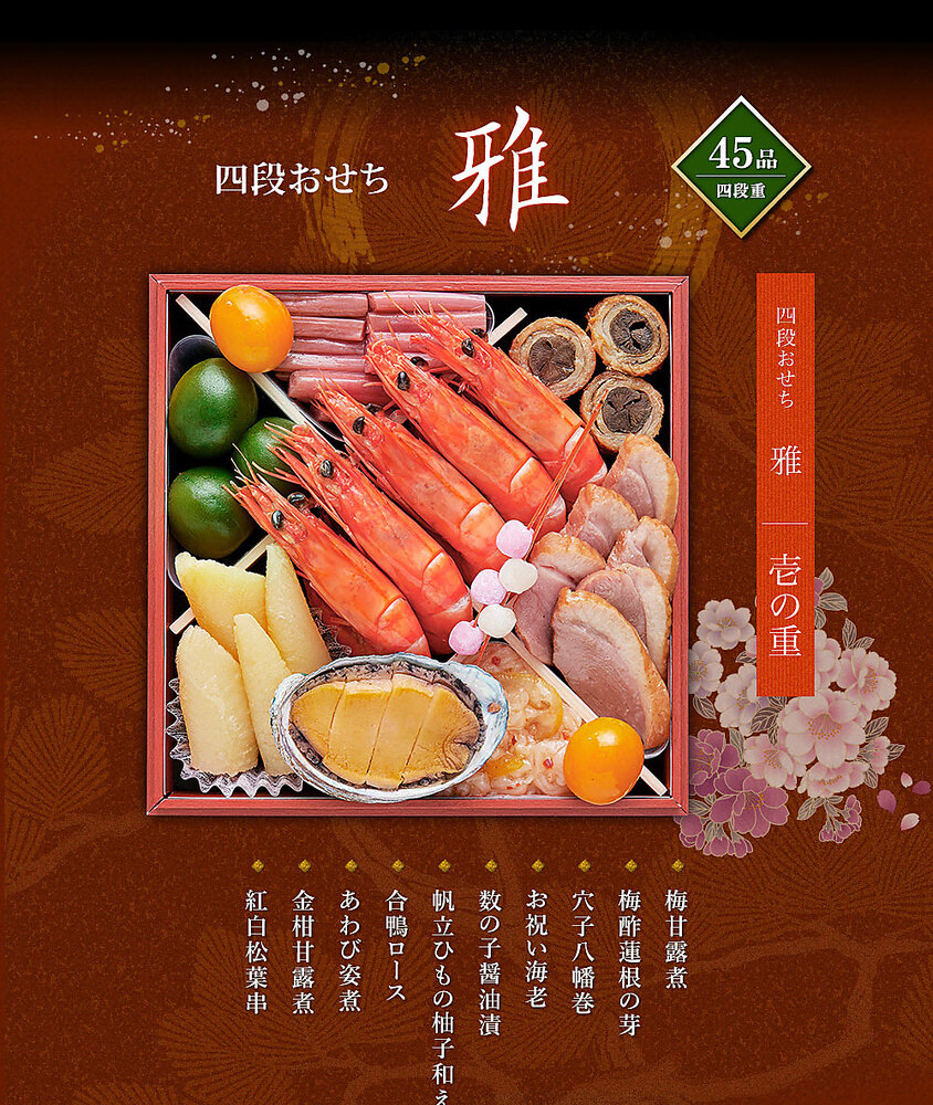 同ショップでおせち商品と他の商品をまとめて注文されますと、他の商品もおせち発送時期の対応になってしまいますので、ご注文は分けてご利用ください。