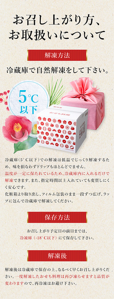 同ショップでおせち商品と他の商品をまとめて注文されますと、他の商品もおせち発送時期の対応になってしまいますので、ご注文は分けてご利用ください。
