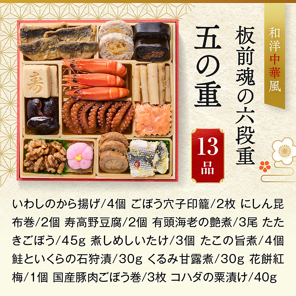 冷凍おせち 6人前~ 和洋中華風 板前魂の六段重 【販売終了日:2025年12月21日】