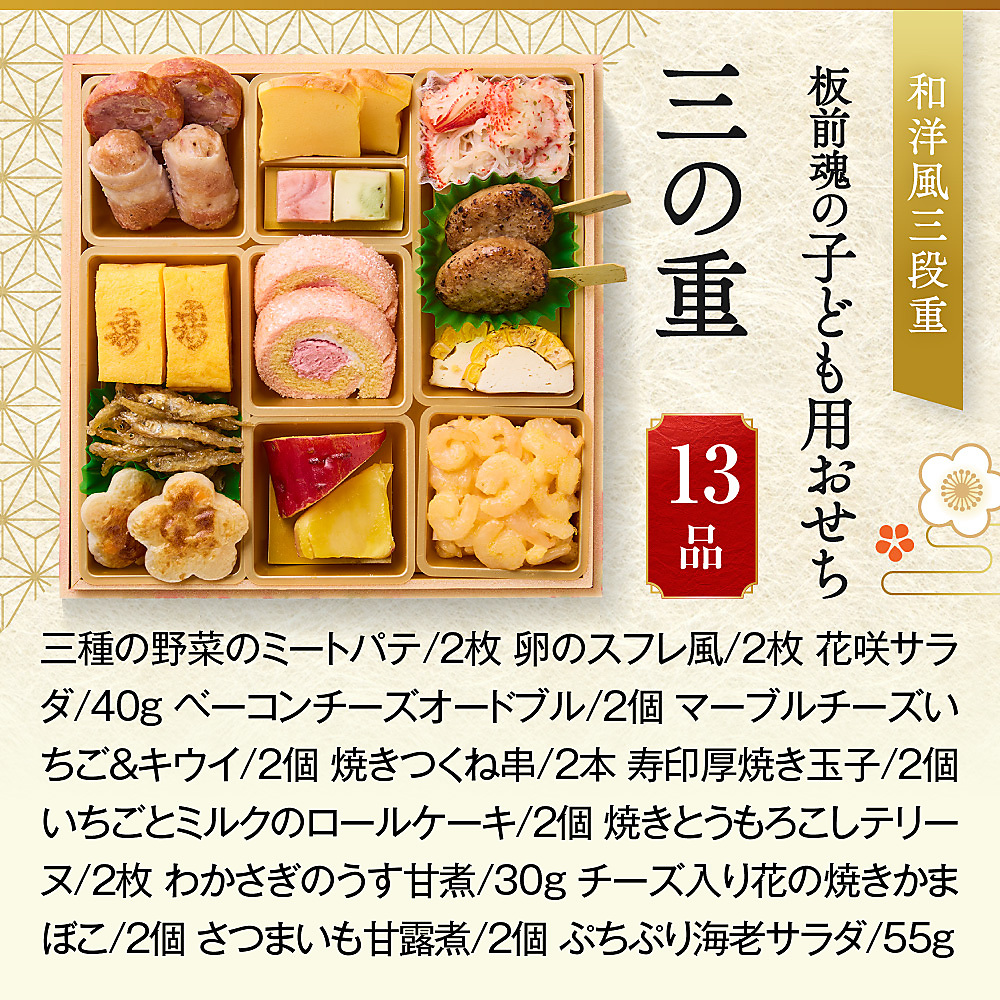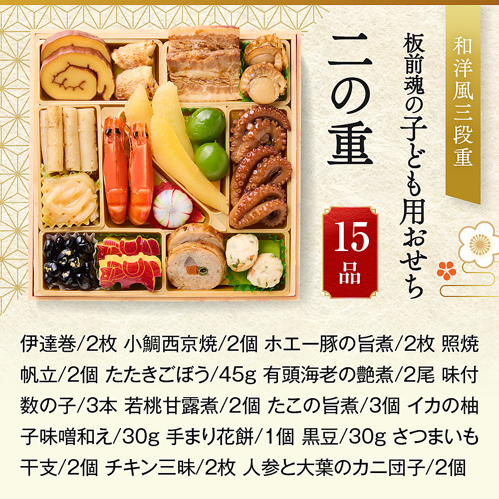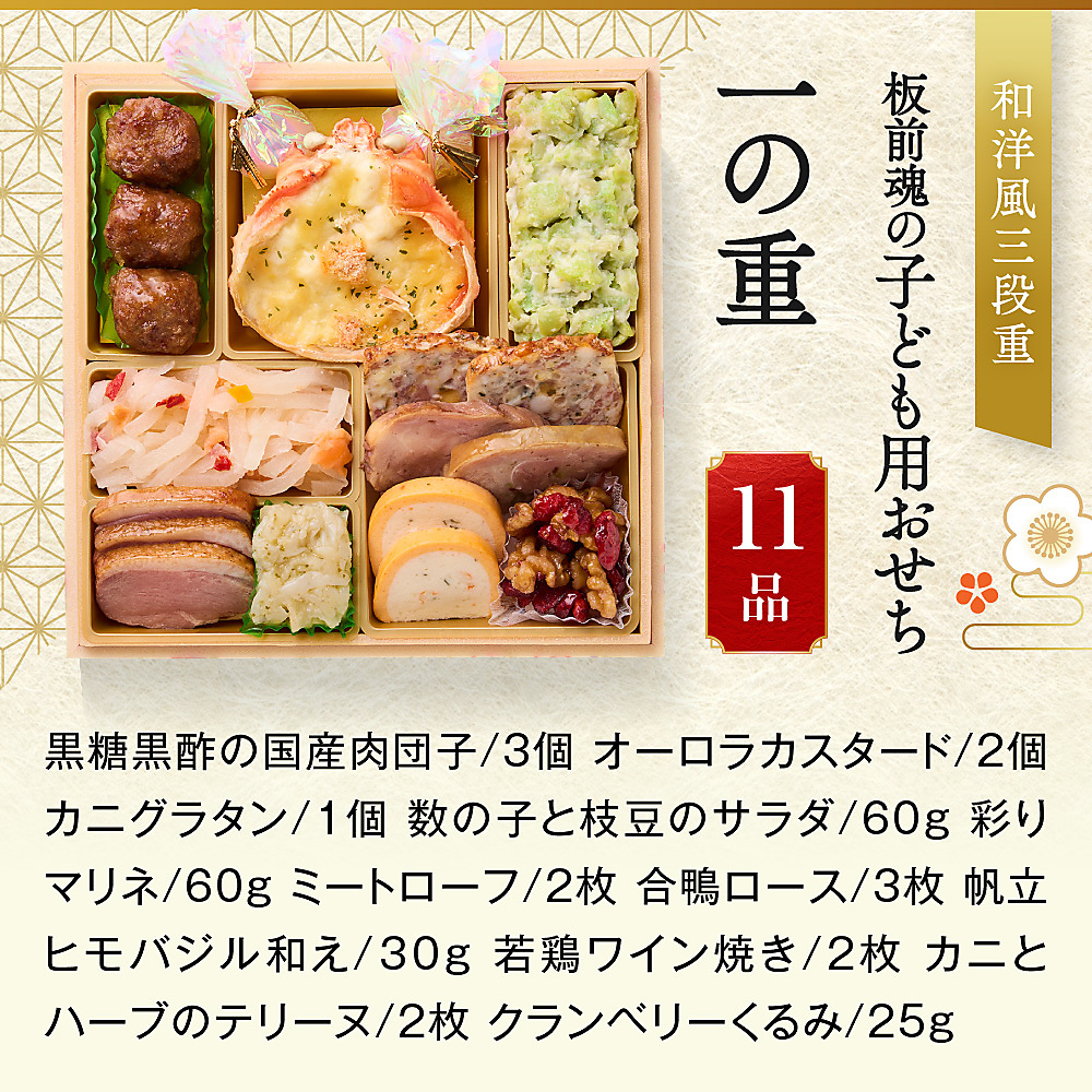 冷凍おせち 2~3人前 和洋風三段重 板前魂の子ども用おせち 【販売終了日:2025年12月21日】