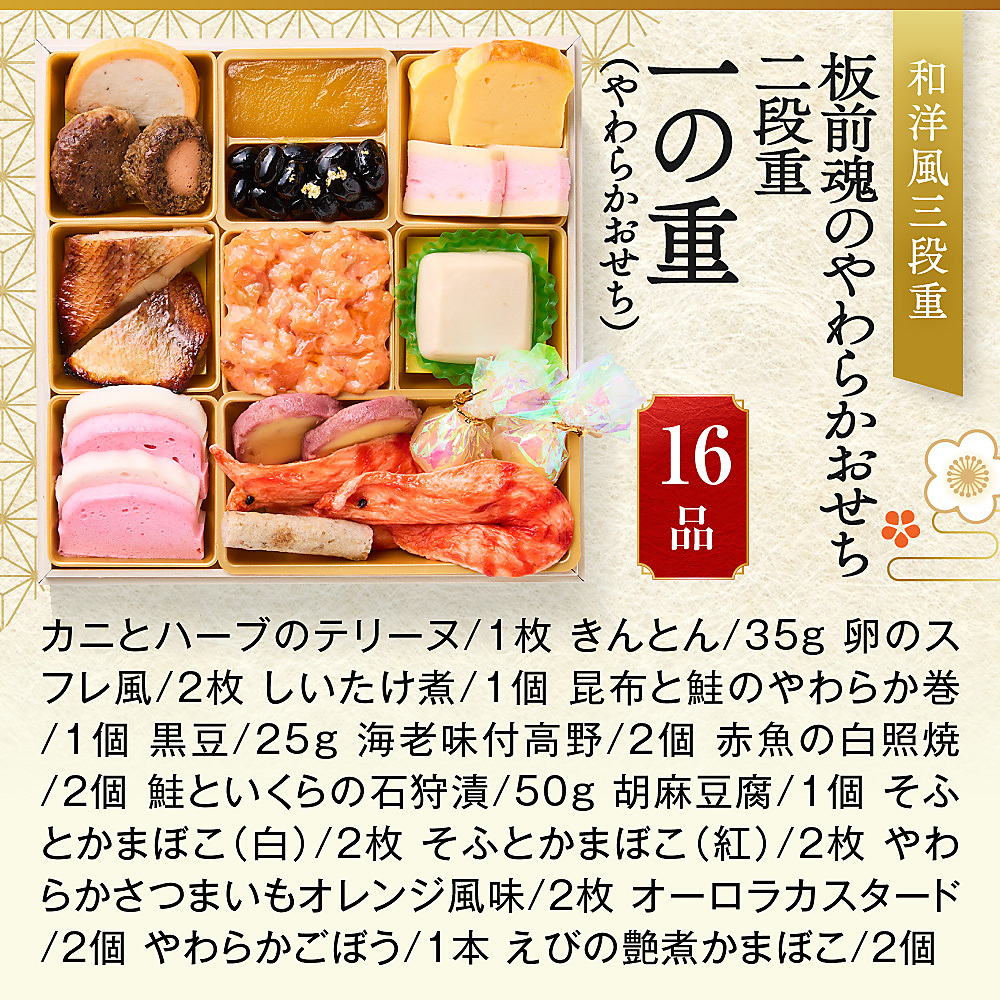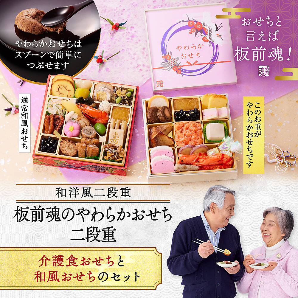 冷凍おせち 1~2人前 和洋風 板前魂のやわらかおせち二段重 【販売終了日:2025年12月21日】