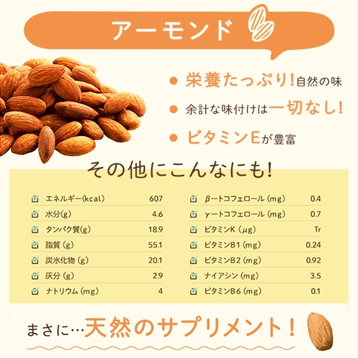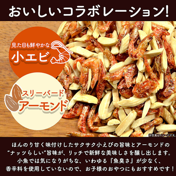 | 原産国・原産地 | アーモンド(アメリカ)、味付えび(素干しえび、砂糖、食塩) |