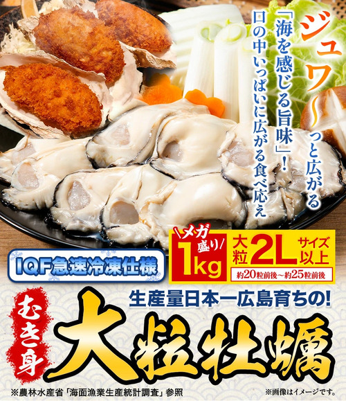 【送料無料】 広島産 大粒 牡蠣 2Lサイズ 1kg (解凍後850g)