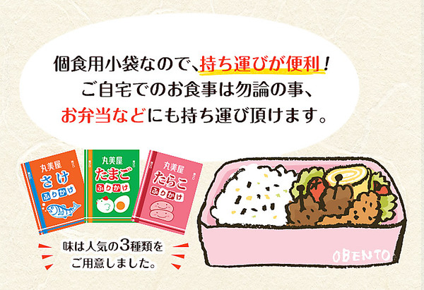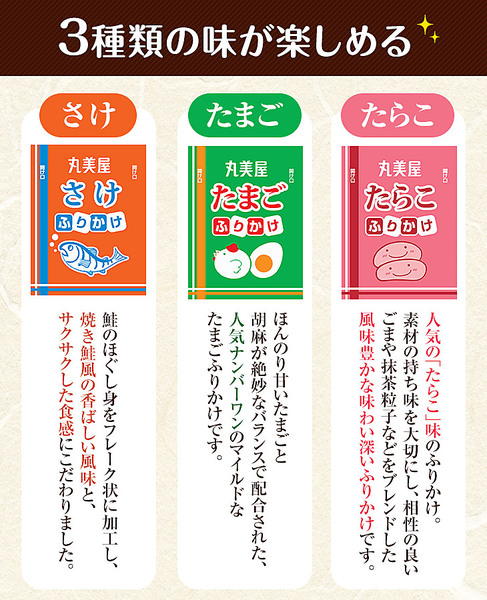 | 内容量 | 36袋(2.5g/1袋)(さけ12袋・たまご12袋・たらこ12袋) |