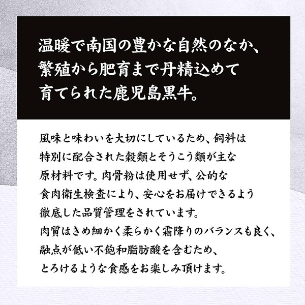 | 原産国・原産地 | 牛肉(鹿児島県産) |