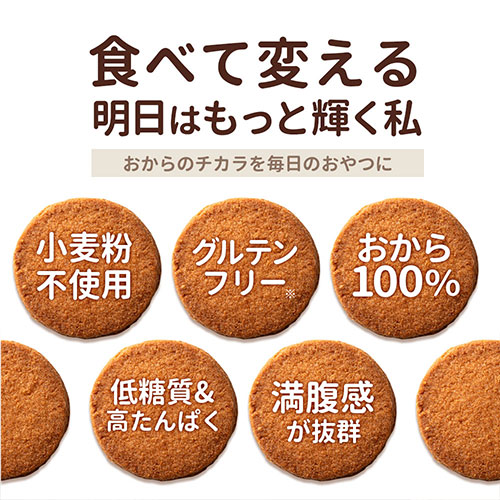| 原材料/素材/材質 | 砂糖(国内製造)、マーガリン、おからパウダー(遺伝子組み換えでない)、卵、食塩/乳化剤、香料、クエン酸、着色料(カロテン)砂糖(国内製造)、マーガリン、おからパウダー(遺伝子組み換えでない)、卵、食塩/乳化剤、香料、クエン酸、着色料(カロテン) |