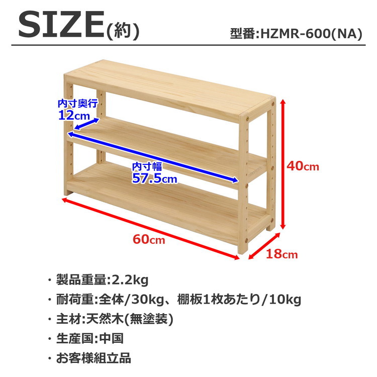 ・耐荷重:全体/30kg 棚1枚/10kg