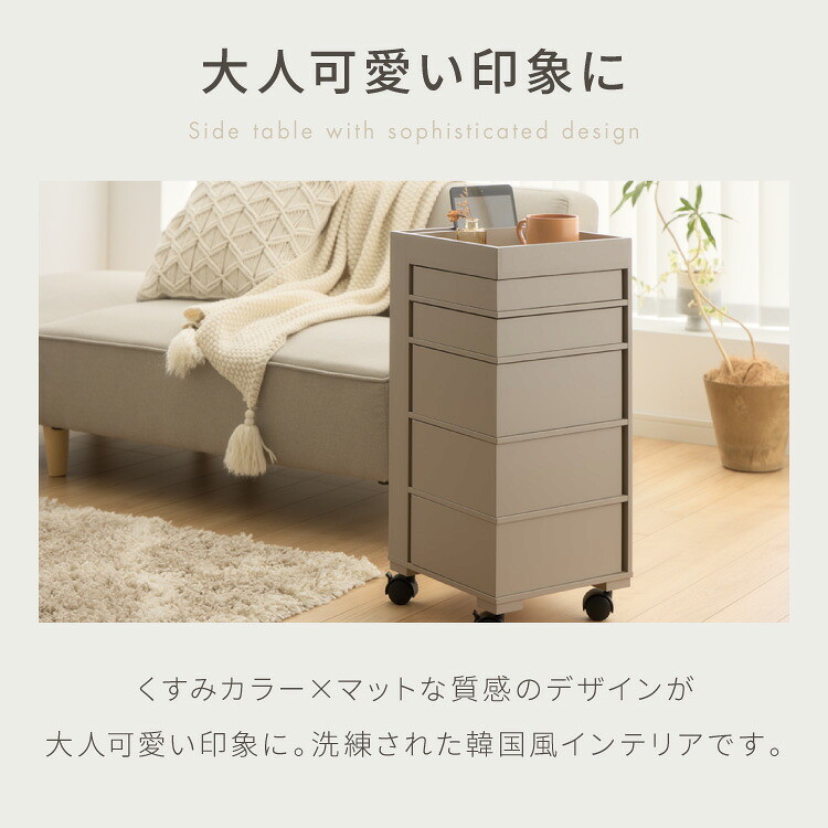 日本製 ワゴン キャスター付き おしゃれ 5段トレイ キッチンワゴン 回転 回転式 キッチン収納 ラック サイドワゴン グレージュ
