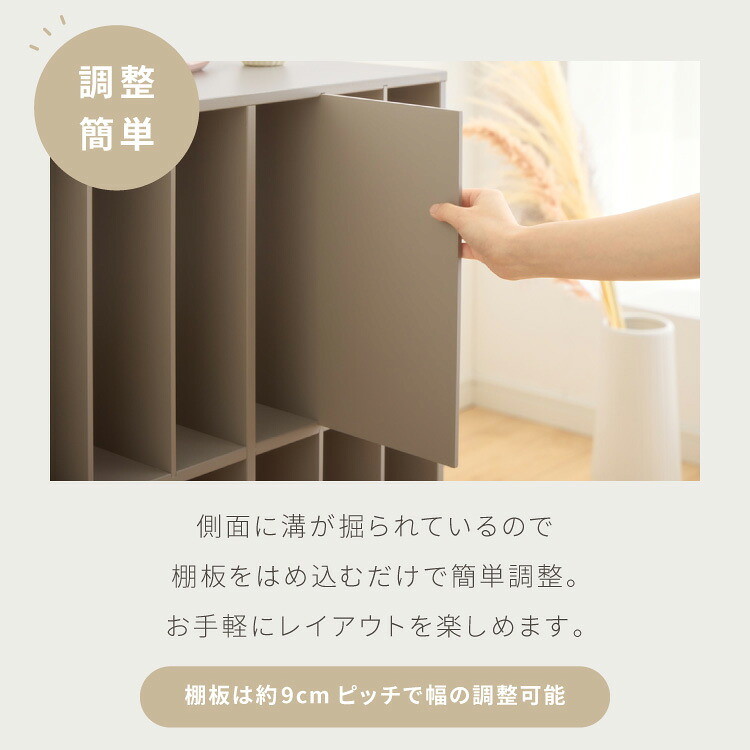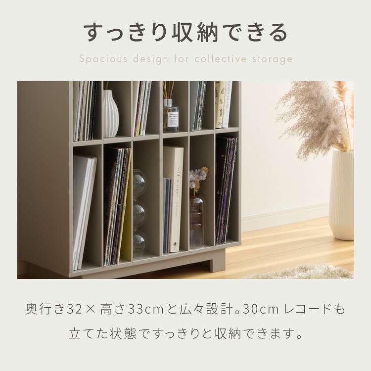 日本製 本段 全て稼働棚のレコードラック ディスプレイラック 大容量 ワインも置けるおしゃれラック 完成品 グレージュ