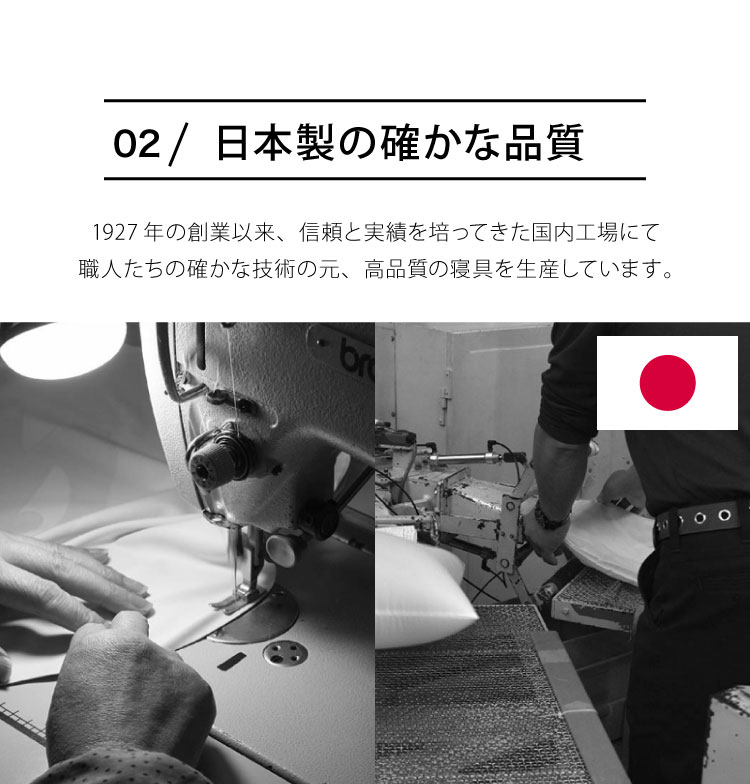 ・快適性…羽毛のように軽く、弾力性に富み、真綿のようにふんわり優しい感触です。