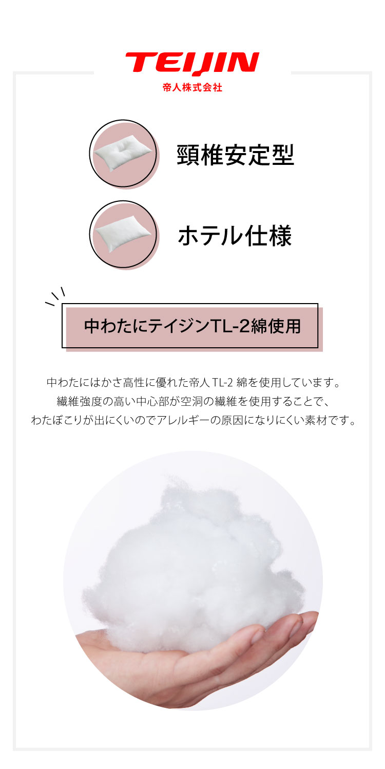 ウォッシャブル枕 43×63cm 日本製 テイジン中綿使用 頸椎安定型 ホテル仕様 肩こり 首こり 国産 安眠 マクラ まくら 洗える 業務用 旅館 ホテル ヌード エスメーロわたホテル仕様