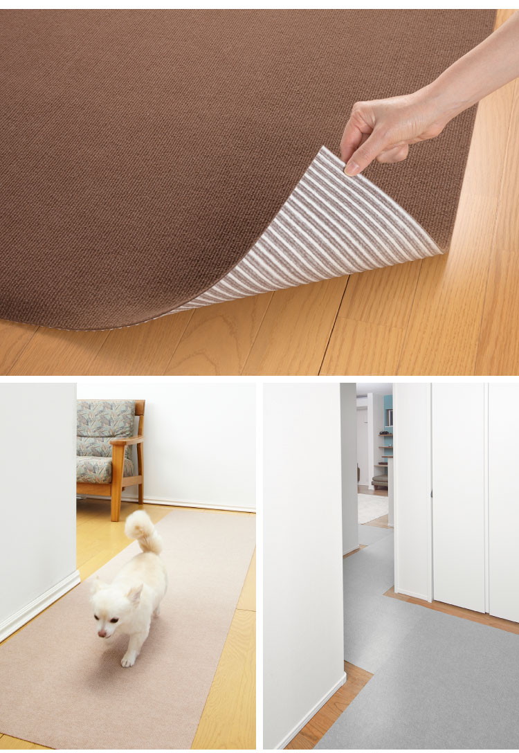日本製 サンコー おくだけ吸着 滑り止め ロングマット 60×300cm 厚さ4mm ペット用 犬用 猫用 ライトグレー