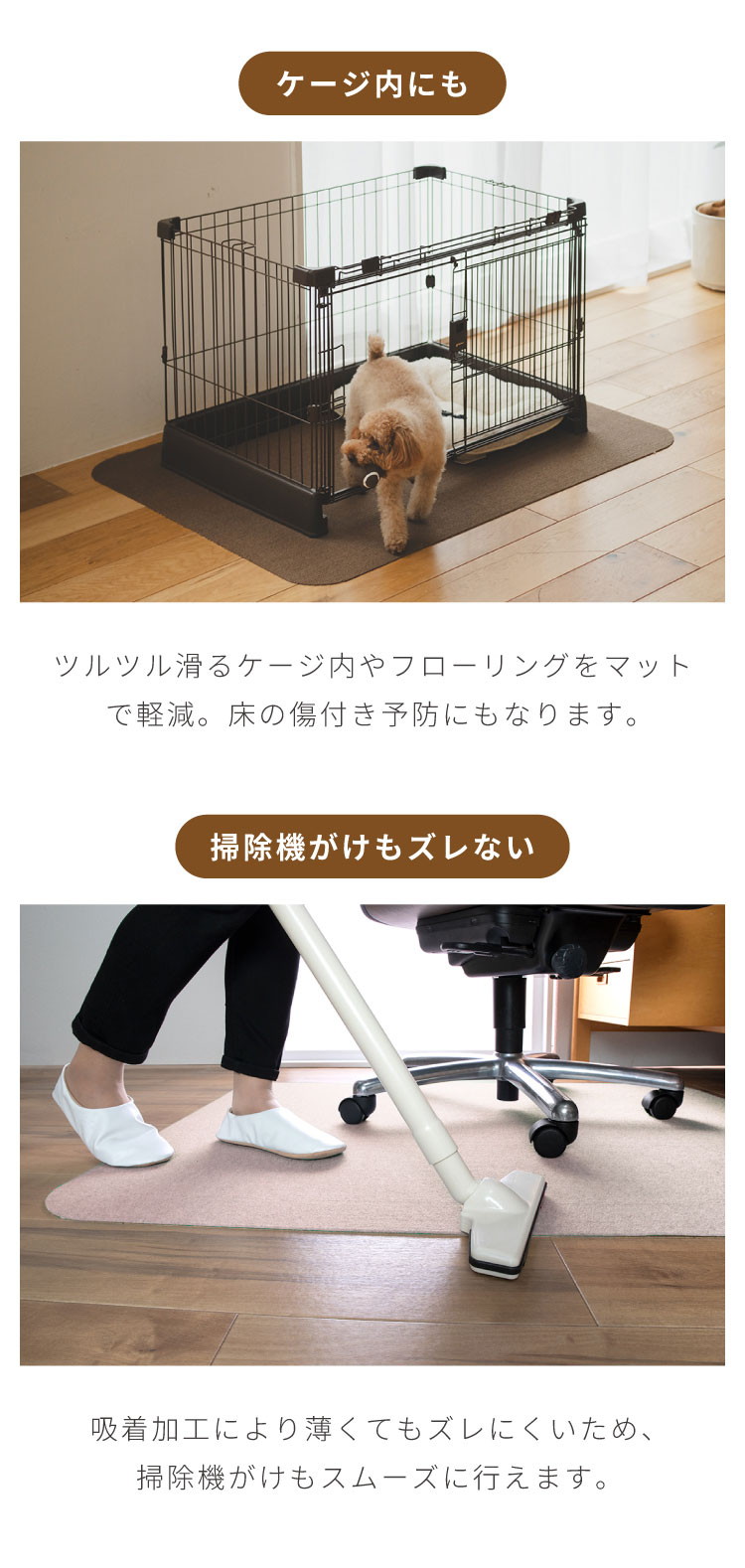 ・掃除機をかけても吸い上がらず、楽にお掃除できます。