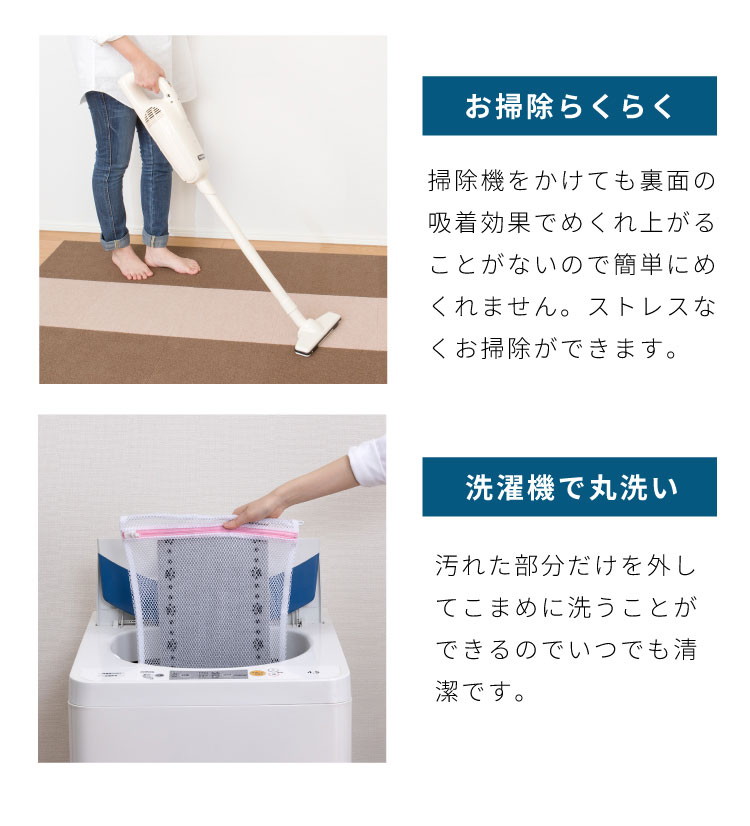 ・掃除機をかけても吸い上がらず、楽にお掃除できます。