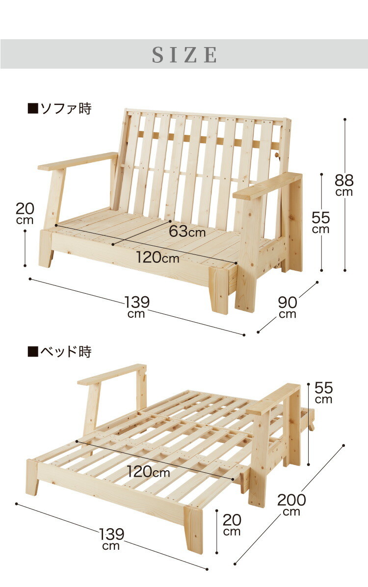 ソファベッド 3WAY 専用布団セット セミダブル 天然木 ベッド カウチソファ 2Pソファ 2人掛け パイン材