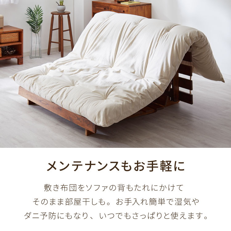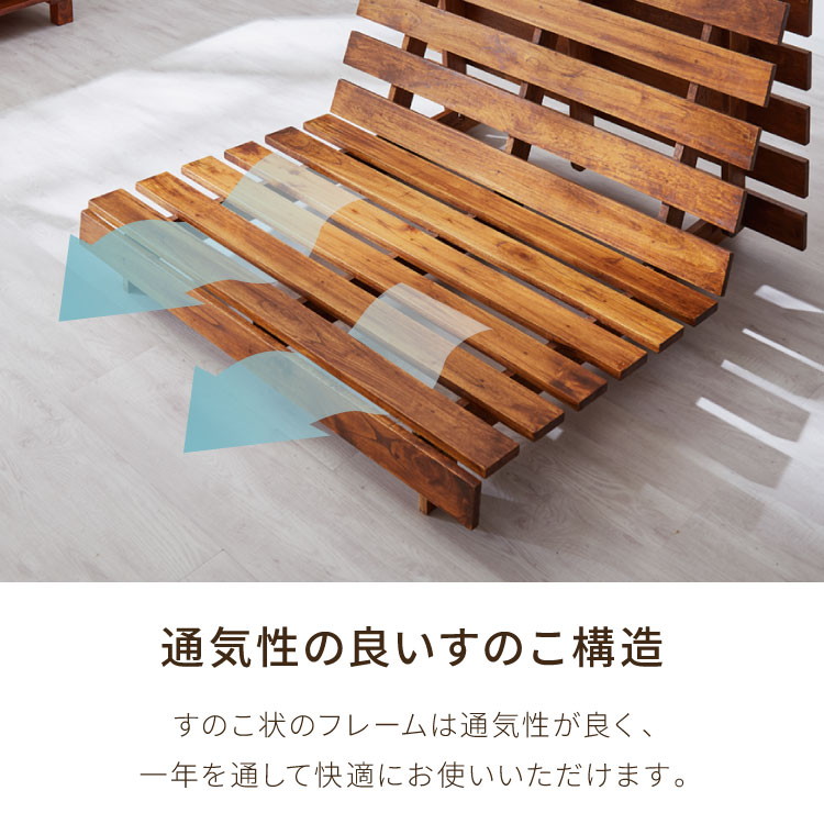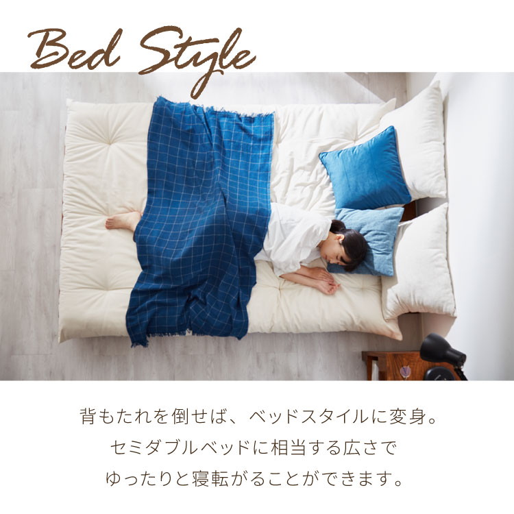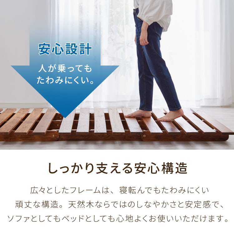 天然木ならではのしなやかさと安定感で、ソファとしてもベッドとしても心地よくお使いいただけます。