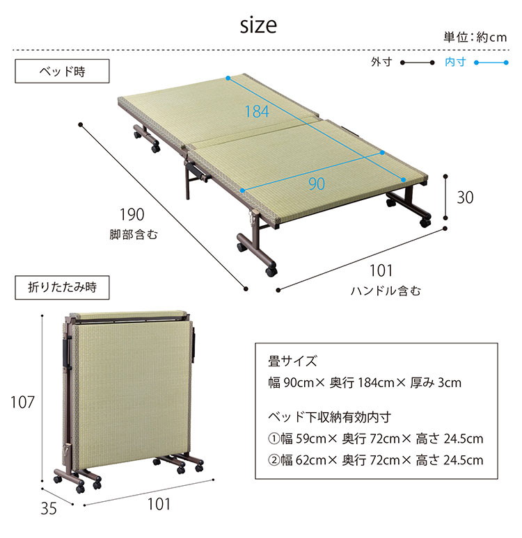 折りたたみ畳ベッド い草の香る シングルベッド 天然い草使用 折り畳みタタミベッド シングル ヘッドレスタイプ