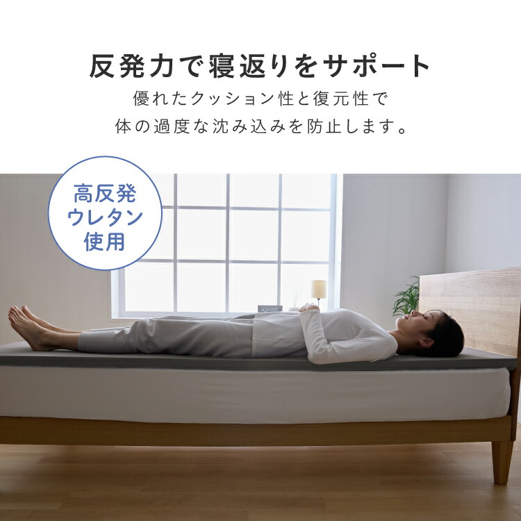 反発力で寝返りをサポート優れたクッション性と復元性で体の過度な沈み込みを防止します。