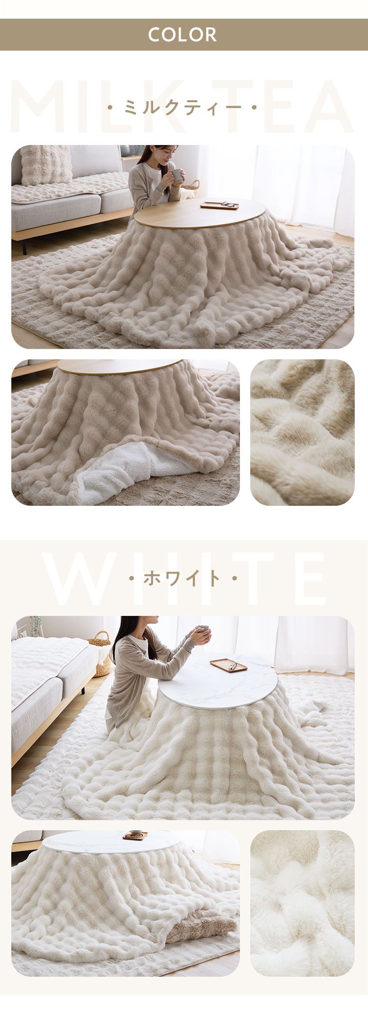 mocone もこもここたつ布団 円形 楕円形 直径195cm 185×235cm 選べる もこもこ こたつ布団 掛け布団 洗える ミルクティー 円形