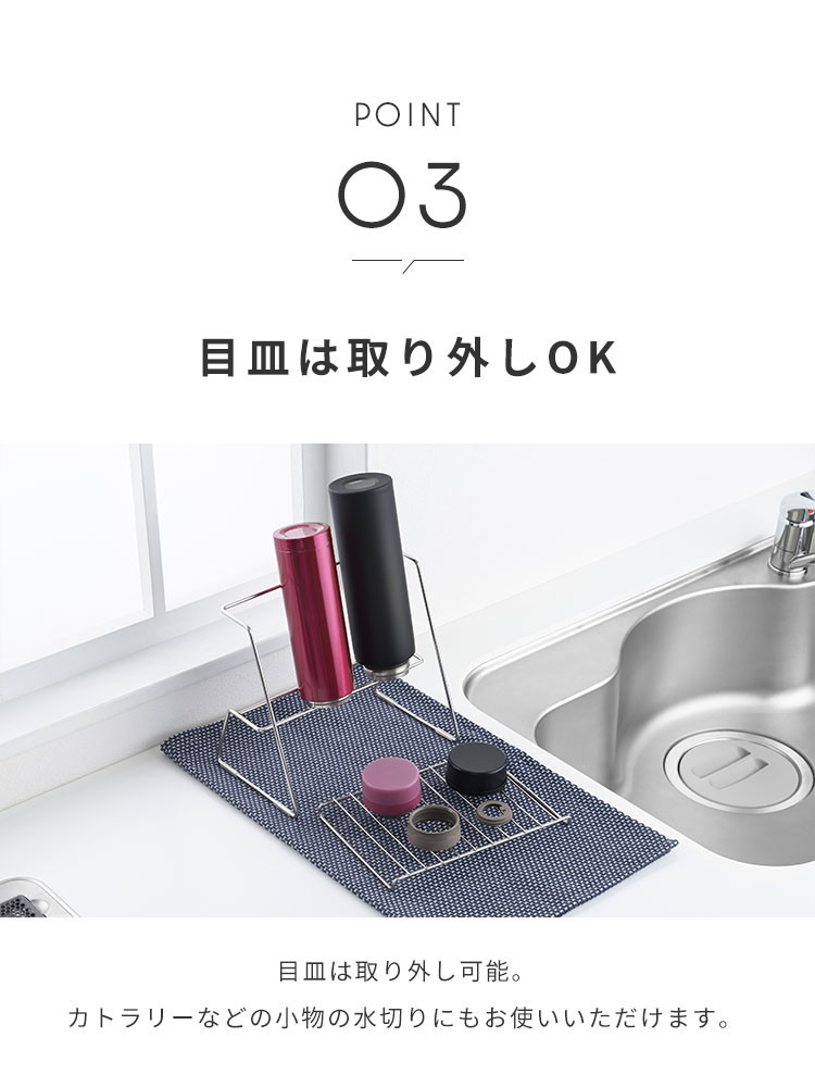 ・ボトル・ケータイマグの水切りに便利な立てかけるだけのステンレス水切り、そのまま収納としてもお使い頂けます。