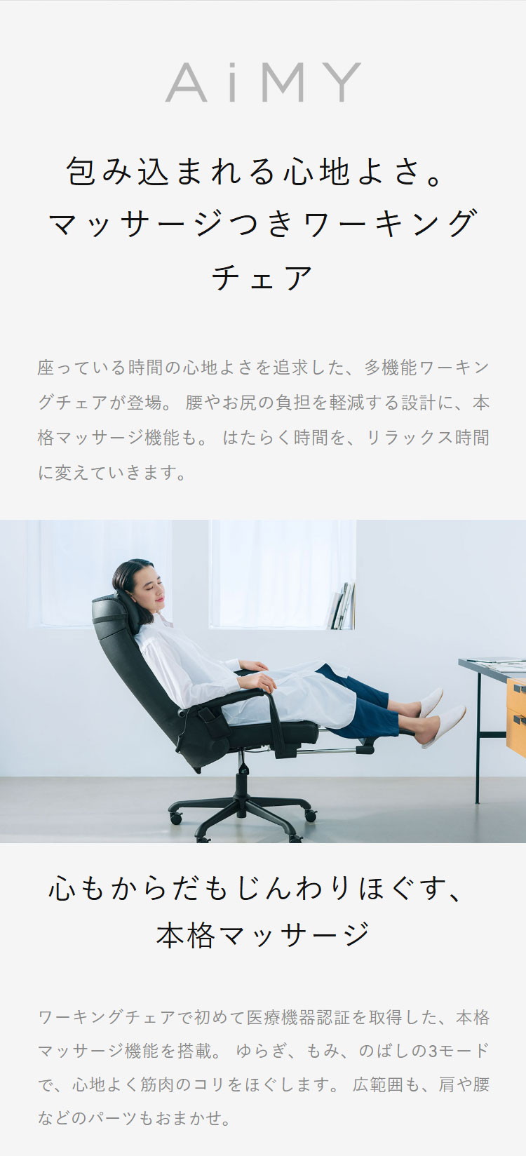 ワーキングチェアで初めて医療機器認証を取得した、本格マッサージ機能を搭載。
