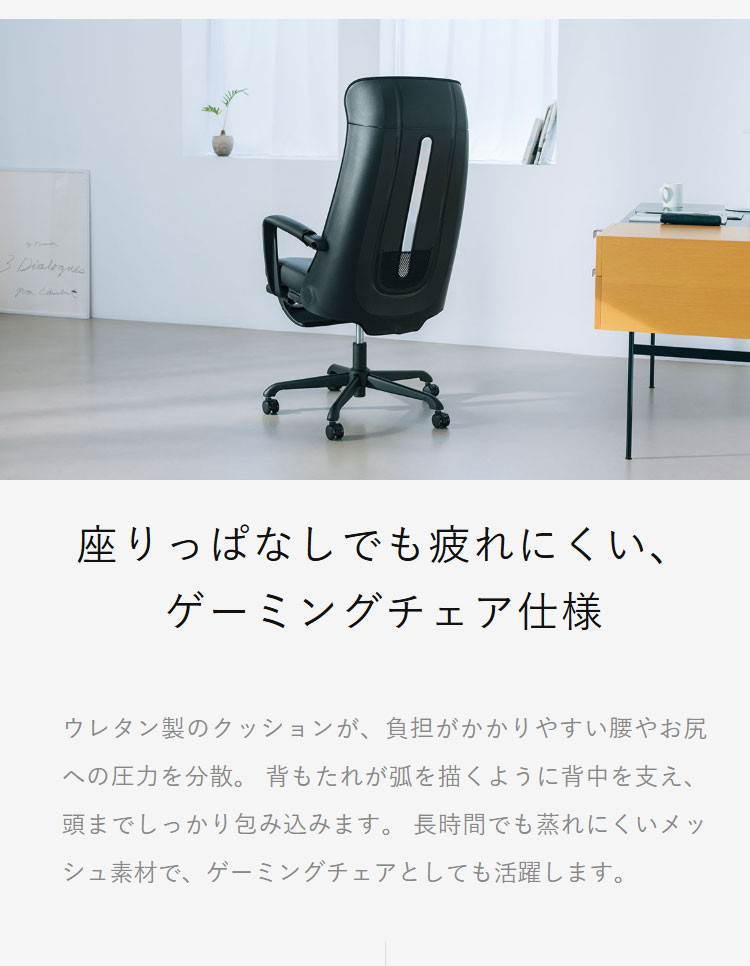 【座りっぱなしでも疲れにくい、ゲーミングチェア仕様】