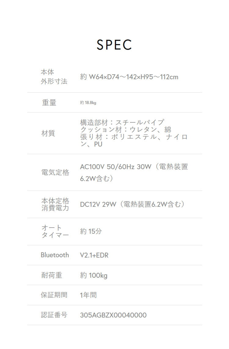 電気定格:AC100V50/60Hz30W(電熱装置6.2W含む)