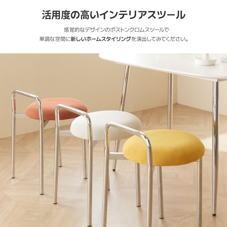 roomnhome ボストン クロム スツール 幅56cm mix素材 クリーム