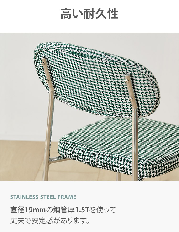 トレンドの千鳥柄を採用し、インテリア性は抜群のチェアとなっております。