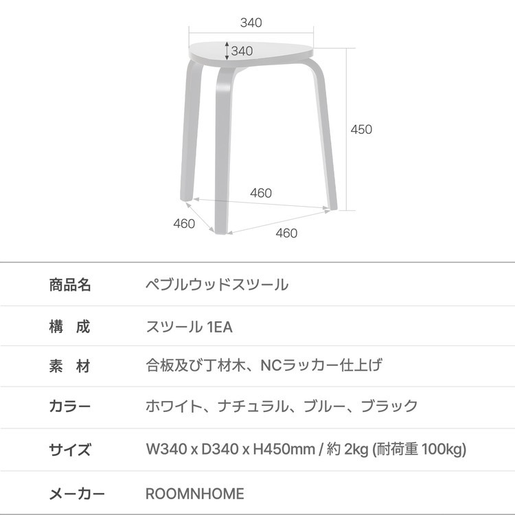 roomnhome スツール スタッキング コンパクト キッチン ダイニング ウッドチェア 木製 丸 丸椅子 ナチュラル