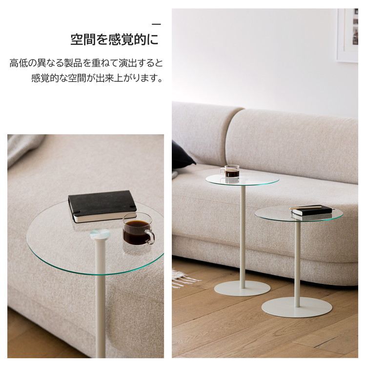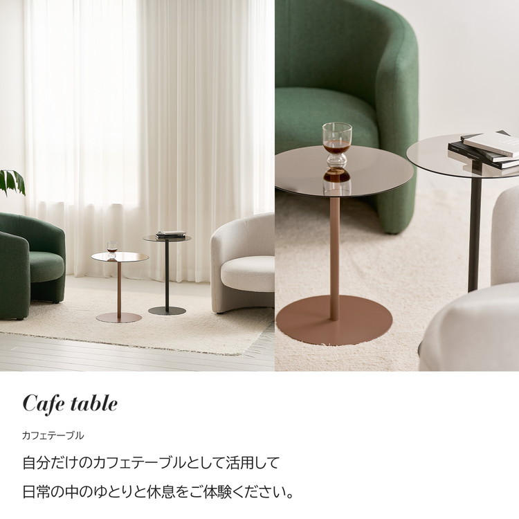 rooomnhome ガラス サイドテーブル 幅40cm 丸形 アンドラウンドガラステーブル ダイニング ブラック