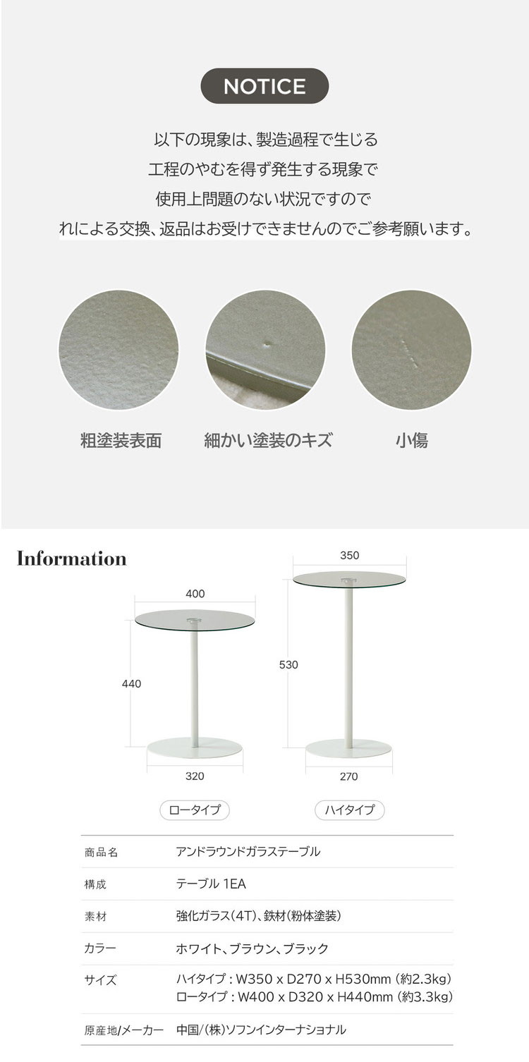 rooomnhome ガラス サイドテーブル 幅30cm ハイタイプ 丸形 アンドラウンドガラステーブル ダイニング ガラステーブル 韓国インテリア ブラック