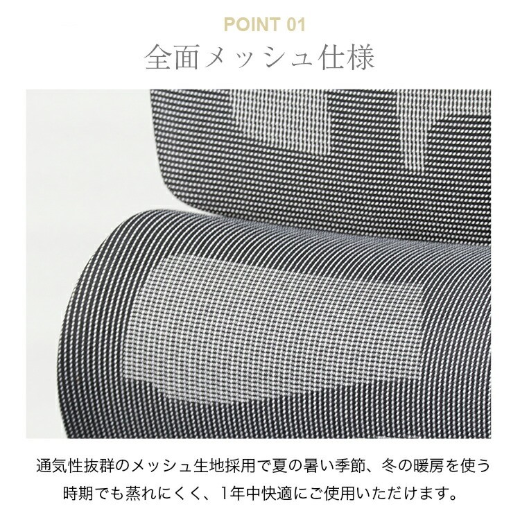 生地は通気性抜群の蒸れにくいメッシュ生地を採用。