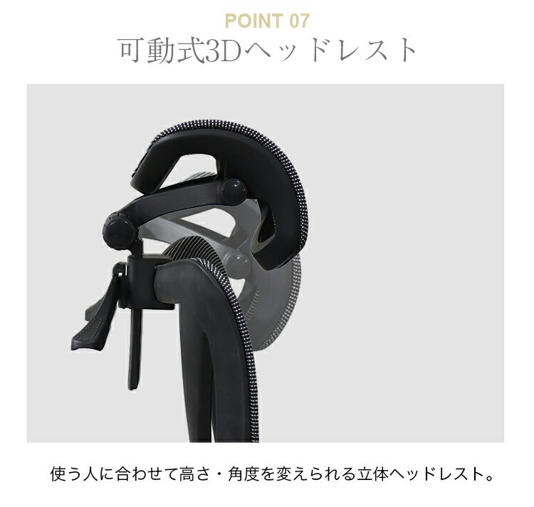 オフィスチェア 可動式ヘッドレスト クッション メッシュ 3Dサポート 無重力リクライニング ロッキング固定機能