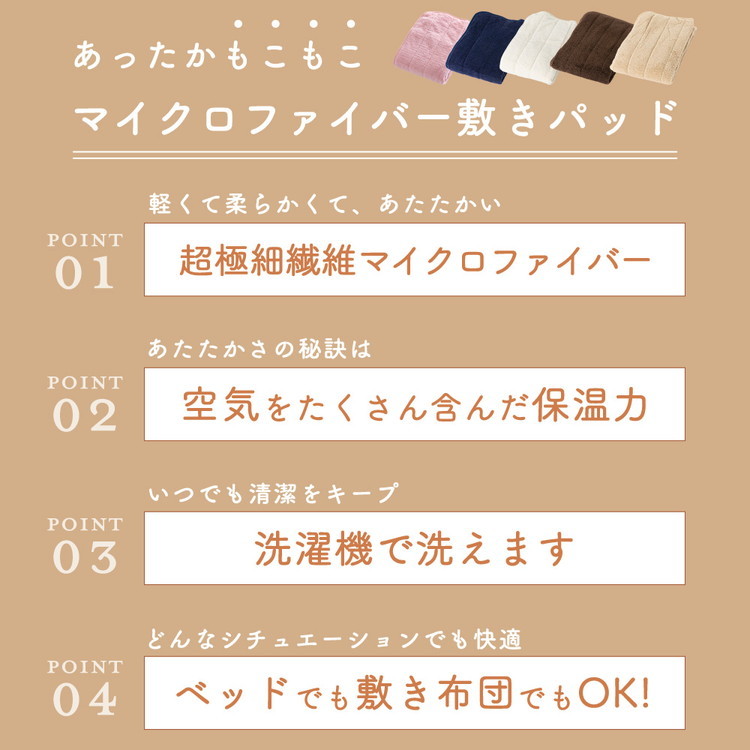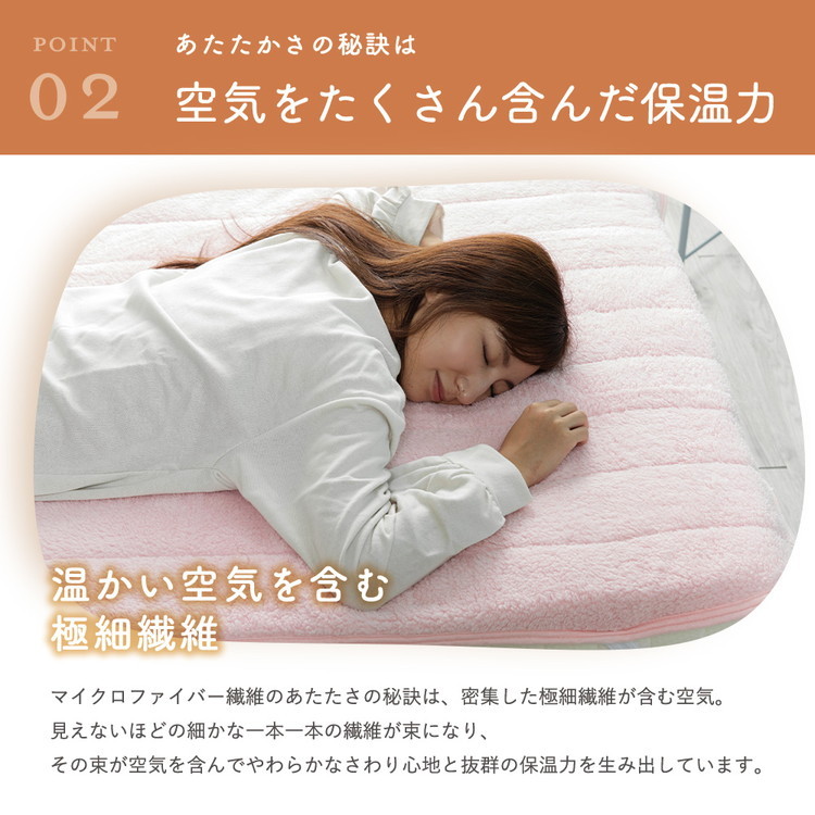 ・超極細繊維である『マイクロファイバー』繊維を使用しているので、軽くてふわふわで肌さわりがとても柔らかい敷きパッドです。