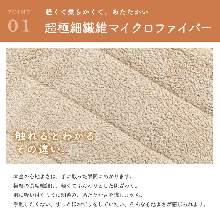 ・極細繊維の中にたくさんの空気を逃さず含まれるので、保温力が高くとても軽いのに暖かにご使用いただけます。