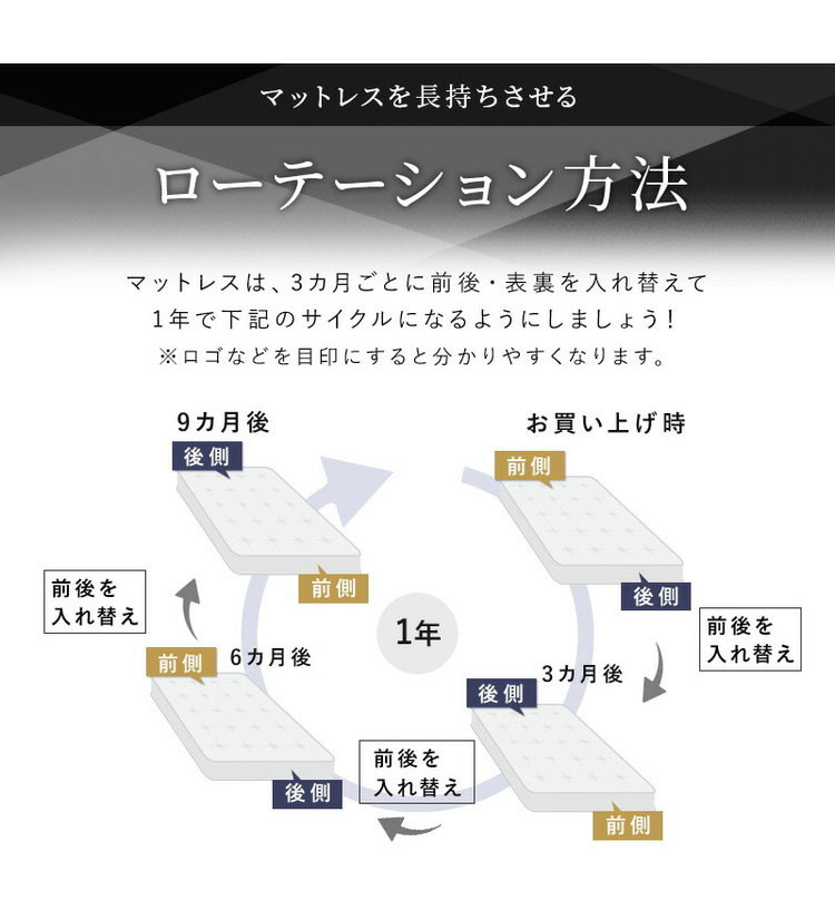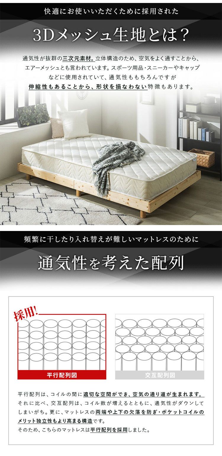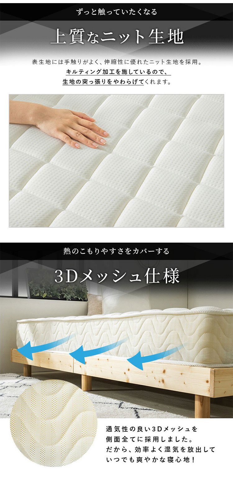 ※ロットの時期により、マットレスの側面メッシュの色味・キルティングパターンが多少異なる場合があります。